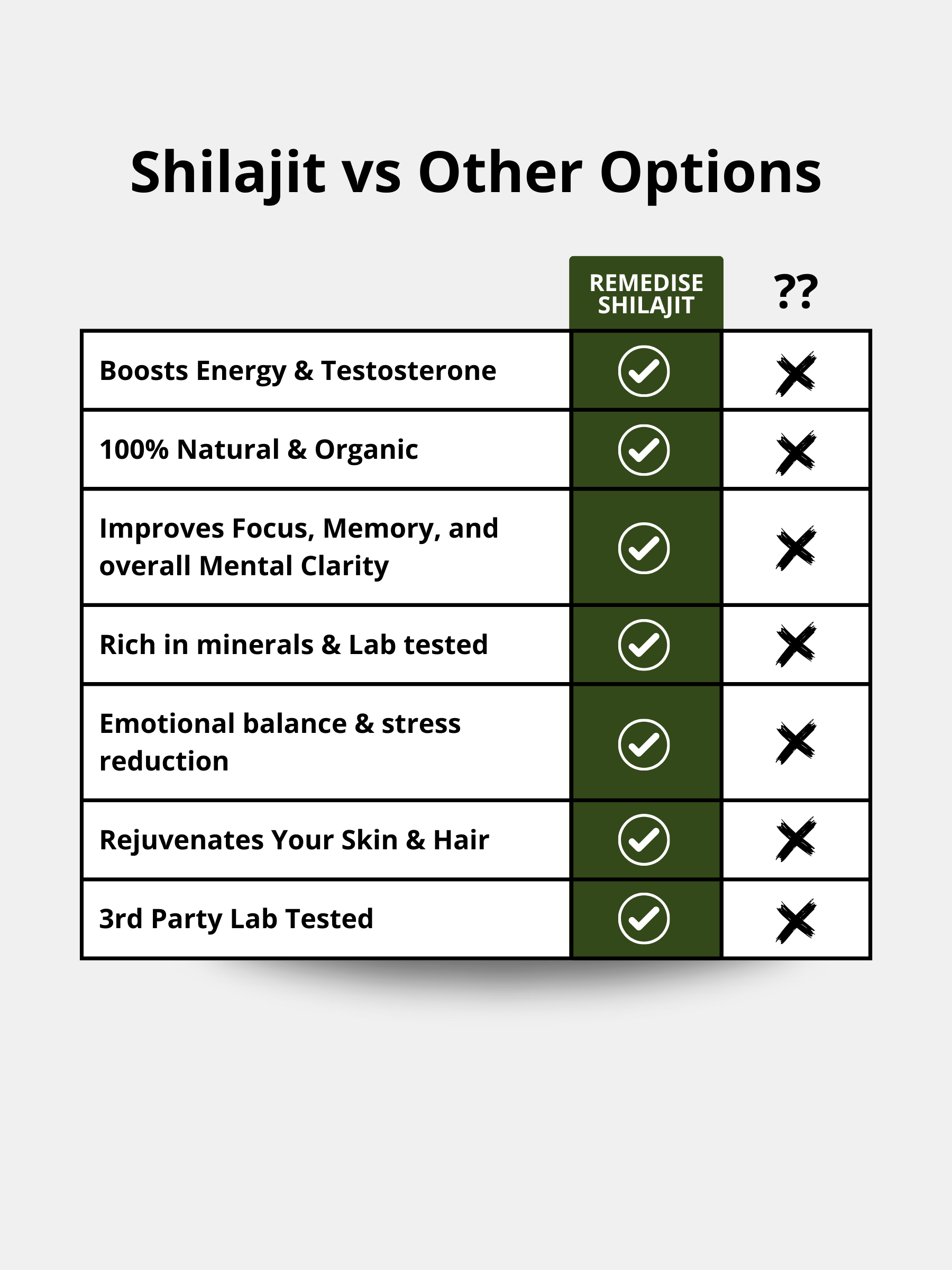 Remedise® Pure Himalayan Shilajit resin is directly sourced from mountains at an altitude of 18,000 feet.